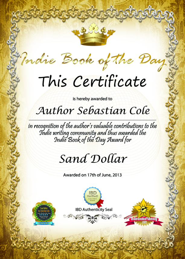 June 17, 2013 | Categories: Announcements, Uncategorized | Tags: Awards, Book Awards, book of the day, Books, eBooks, fiction, Indie Authors, Indie Book of the Day, love, novels, romance, sand dollar, Sebastian Cole | 2 Comments